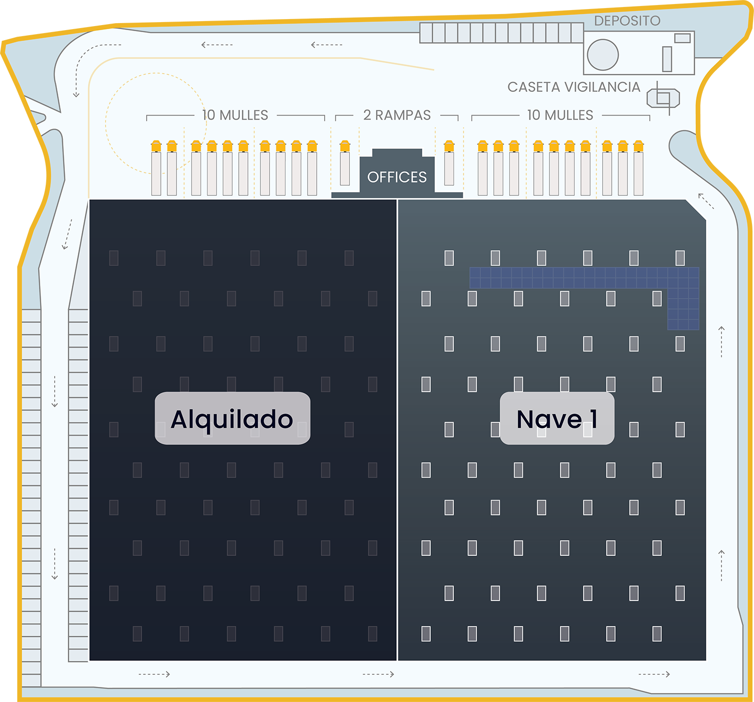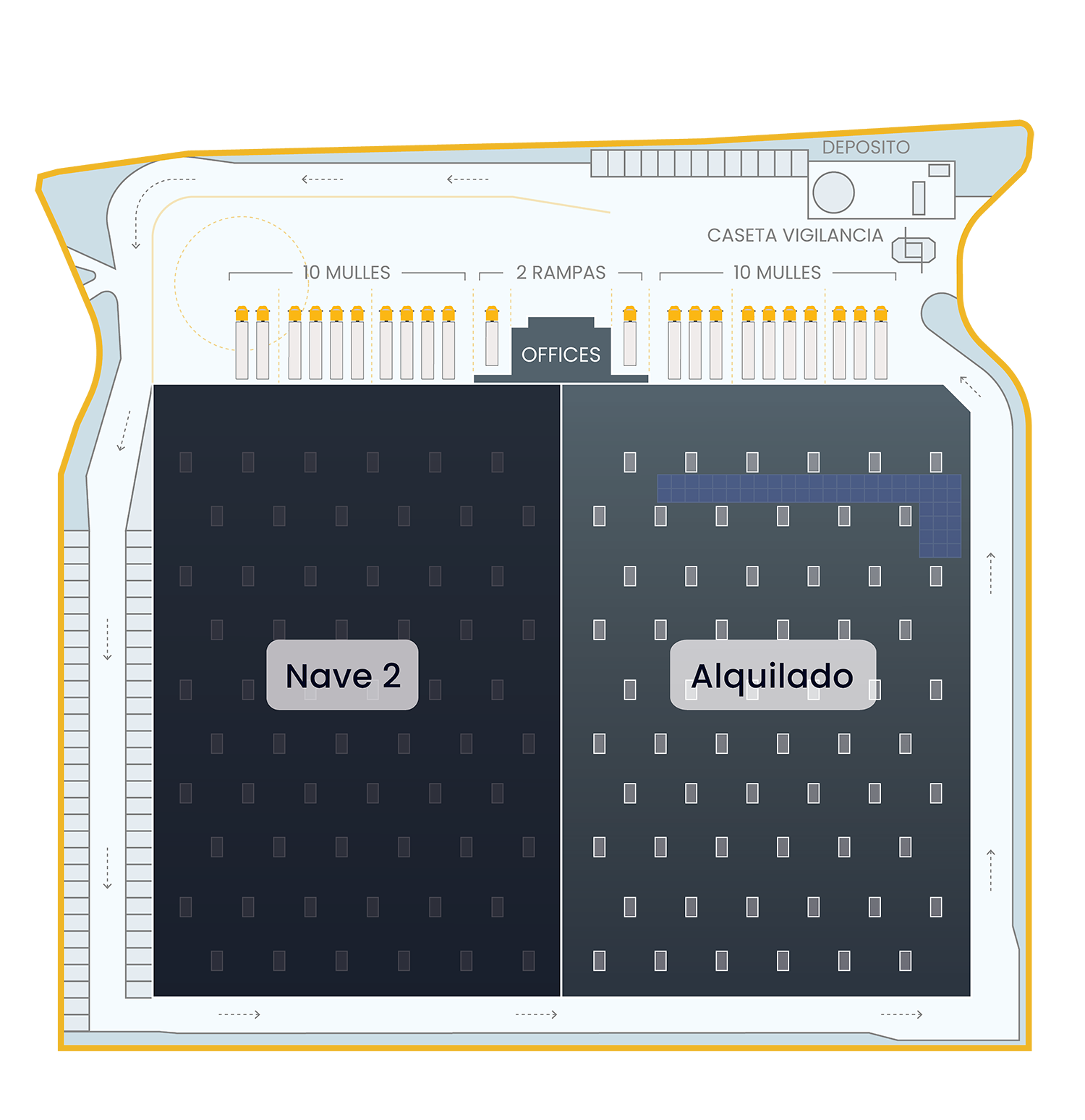 Con una superficie de parcela de 33.410 m² y un espacio de oficinas de 1.000 m², las dos naves garantizan máxima operatividad para actividades de almacenaje y procedimientos de entrega de última milla.